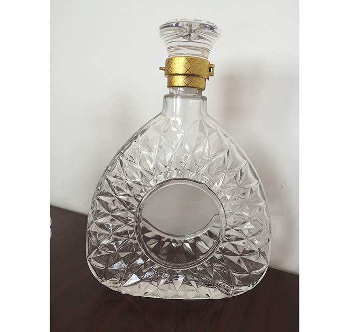 蒙砂酒瓶是在制品玻璃上,粘附一定大小面積的玻璃色釉粉,玻璃瓶廠經(jīng)過(guò)580~600℃的高溫烘烤,使玻璃色釉涂層凝結(jié)在玻璃外表,并顯現(xiàn)出具有與玻璃主體不同顏色的一種裝飾辦法。粘附玻璃色釉粉,可用排筆涂刷,亦可用膠輥滾涂。經(jīng)過(guò)絲印加工,能夠得到蒙砂面的樓空?qǐng)D案。 其辦法是:在玻璃制品外表上,絲印一層由阻熔劑構(gòu)成的圖案紋樣。